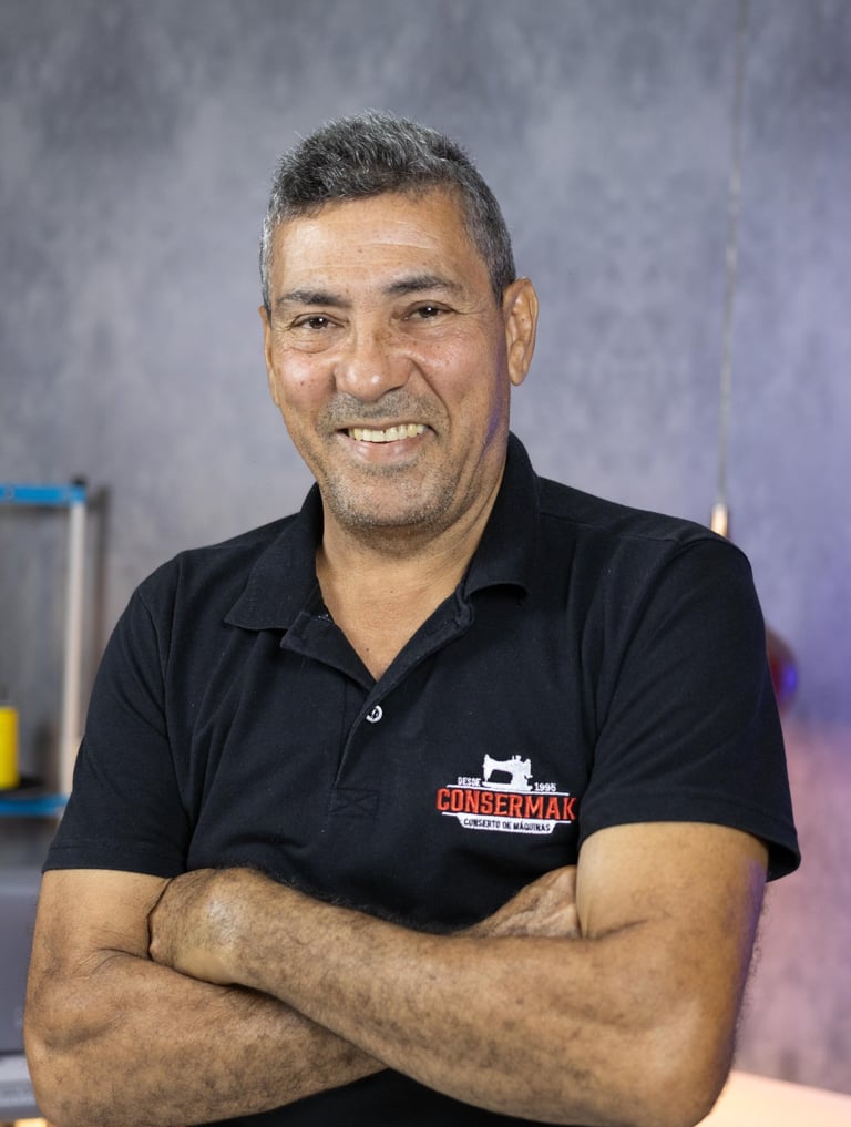 Carlos é o maior mecânico de máquinas de costura do Oeste da Bahia com mais de 30 anos de experiência. Aprendeu tudo que sabe sozinho e foi aperfeiçoando as suas técnicas todos os dias ao longo dos anos.